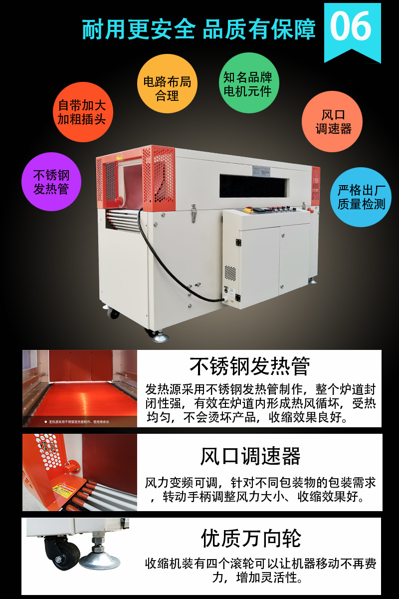 - 热收缩机配备了多种安全保护装置,确保操作人员的安全。例如,设备设有防护栏、紧急停止按钮、温度传感器等,当出现异常情况时,能够及时停止设备运行,避免事故的发生。