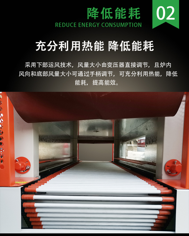 - 热收缩机采用先进的节能技术,降低能源消耗。例如,一些热收缩机采用智能控制系统,可以根据产品的包装需求自动调节加热温度和时间,避免能源的浪费。同时,优化的加热系统设计可以提高热效率,减少热量损失。