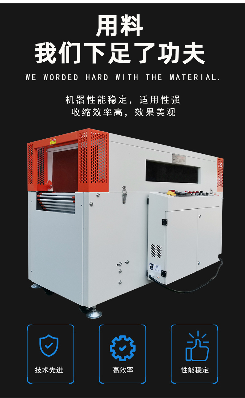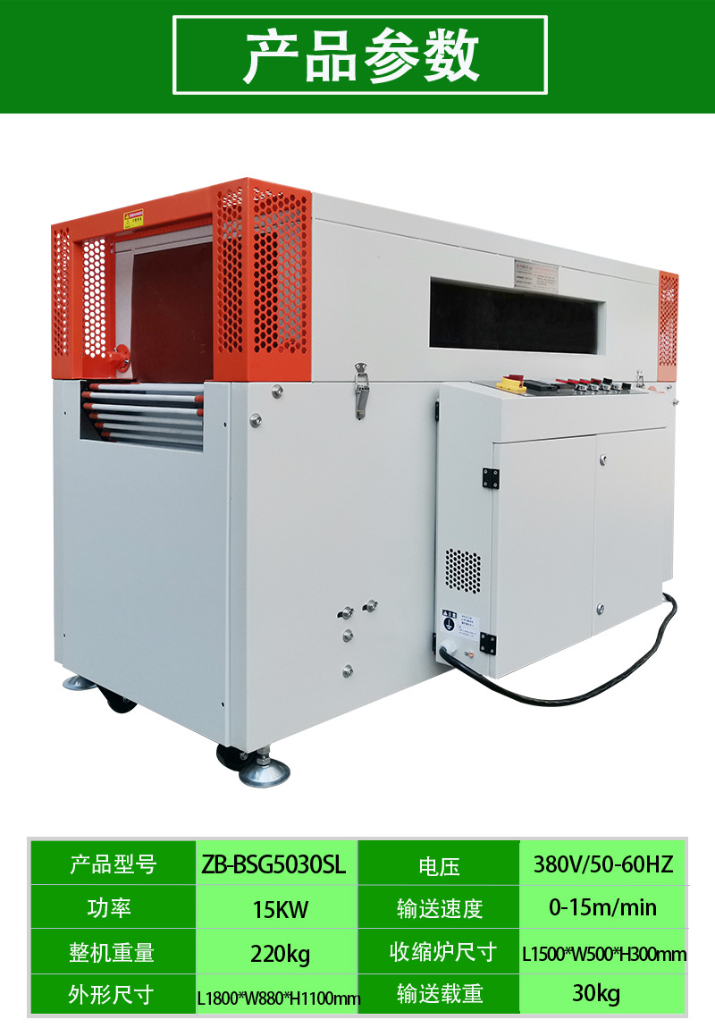 ZB-BSG5030SL热收缩机是通过加热装置将热收缩薄膜加热至一定温度,使其软化并收缩,紧密地包裹在产品表面,从而实现对产品的包装