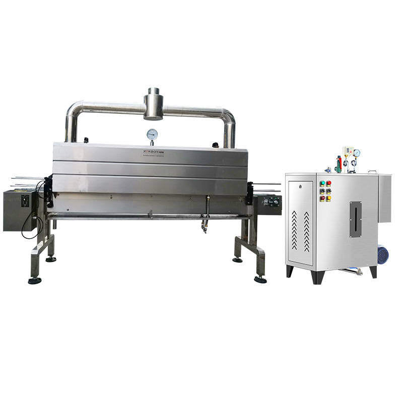 通常由蒸汽发生器、输送系统、加热室、控制系统等部分组成。蒸汽发生器产生高温蒸汽,输送系统将待收缩包装的产品输送至加热室,在加热室内,蒸汽均匀地作用于包装薄膜,使其收缩贴合在产品表面。控制系统则负责调节蒸汽温度、输送速度等参数,以确保收缩效果的稳定性。