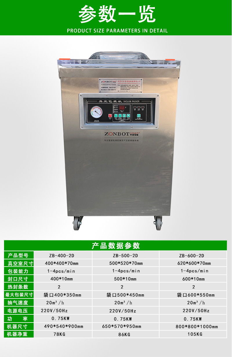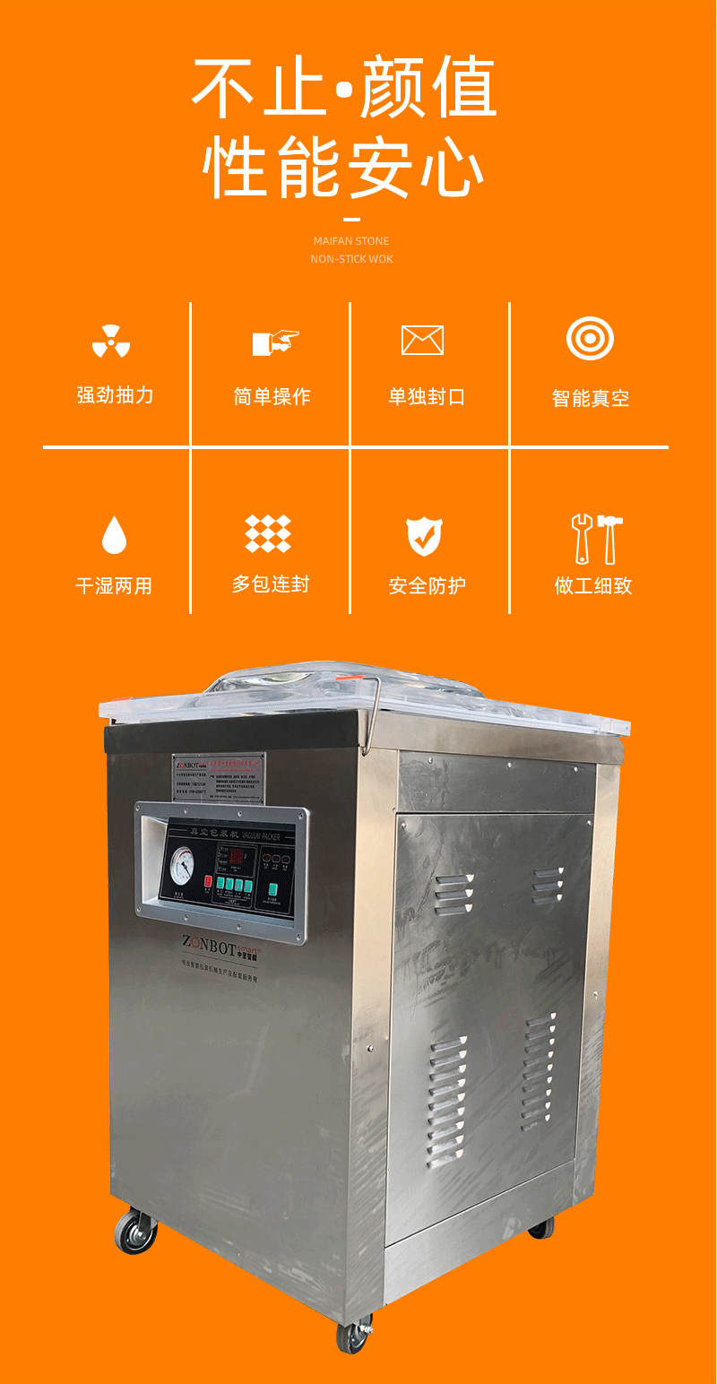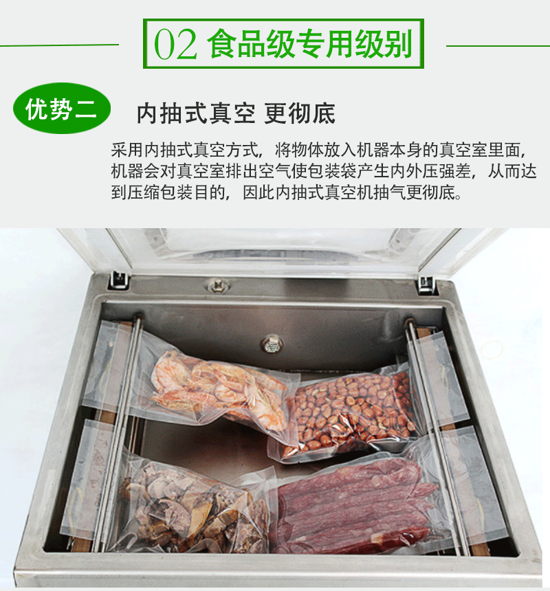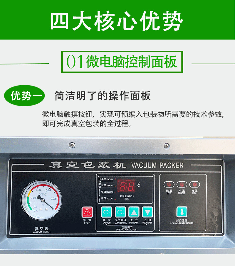 - 操作简便:具有人性化的操作界面,易于操作和掌握。用户可以根据不同的产品设置合适的真空度和封口时间。
