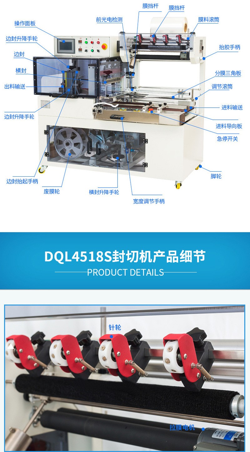 全自动边封机主要由送料系统、封切系统、控制系统等组成。