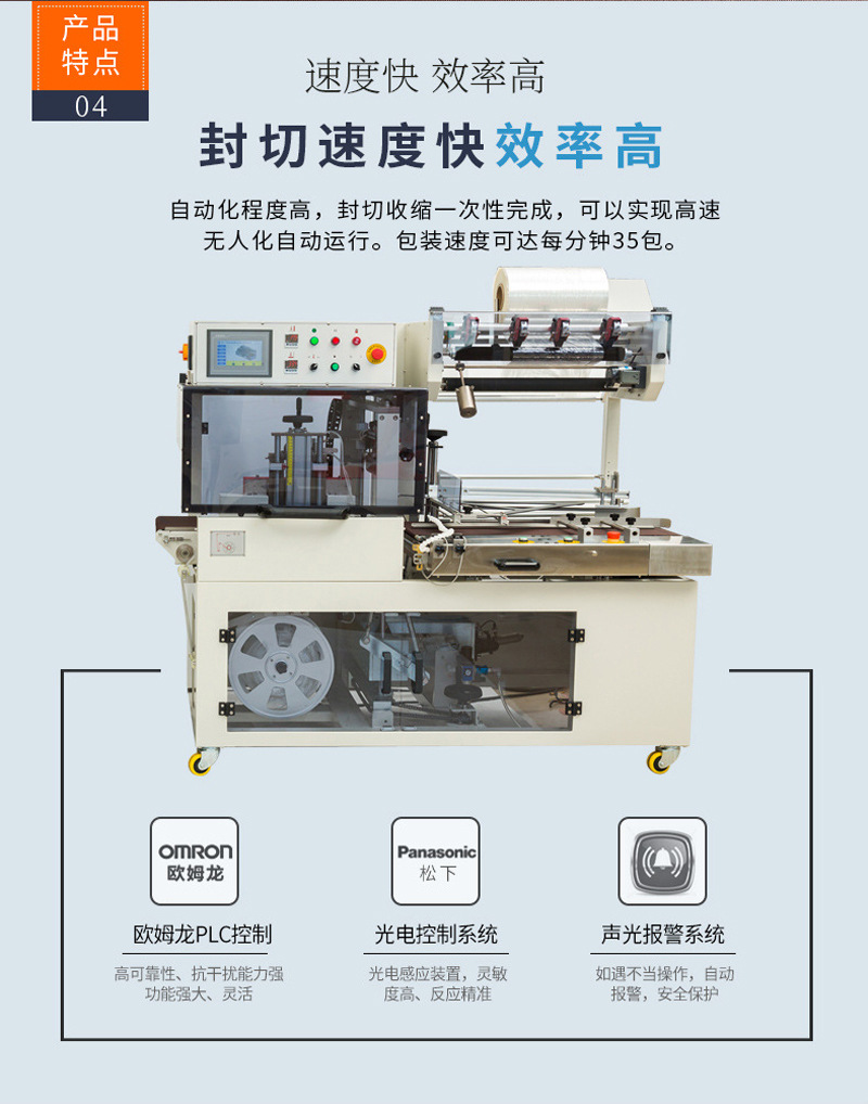 送料系统将待包装物品平稳地输送至封切位置。封切系统通过加热元件对包装薄膜进行加热,使薄膜软化并贴合在物品周围,同时进行封边操作,将物品密封在薄膜内。控制系统精确控制各个环节的动作,确保设备的稳定运行和包装质量。