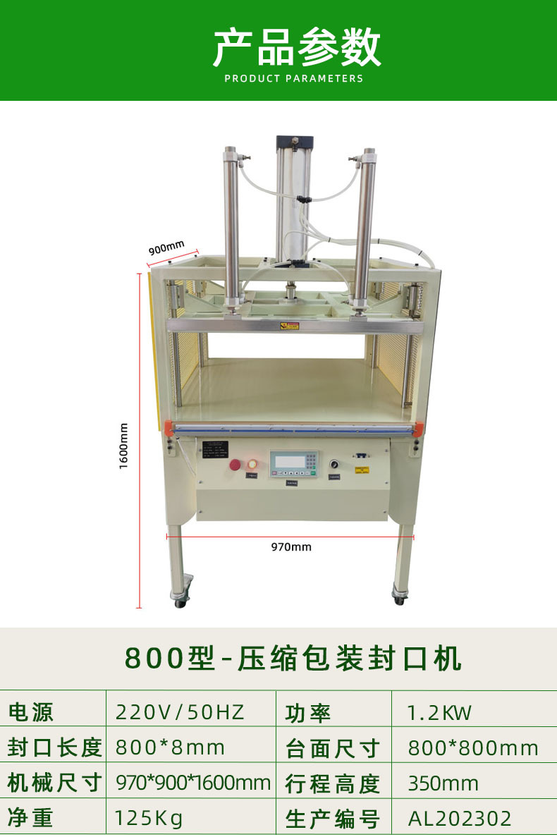 - 压力范围:压力范围决定了机器能够适应的包装材料的种类和厚度。压力范围一般从 0.1 - 1MPa 不等。较厚的包装材料需要更高的压力才能实现良好的封口效果。