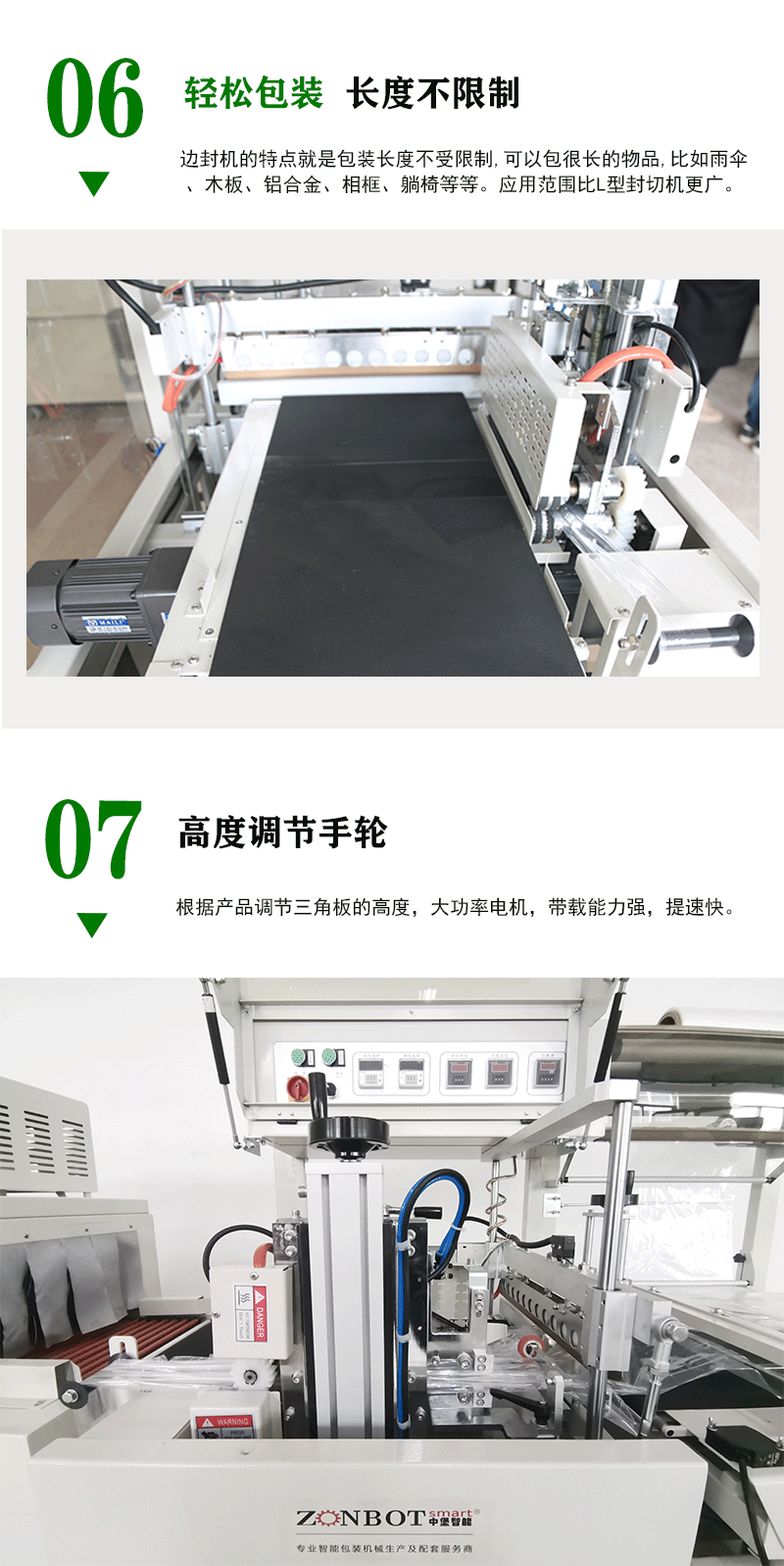 - 高效自动化:能够自动完成物品的输送、薄膜套膜、封切等一系列包装操作,无需大量人工干预,大大提高了包装效率,尤其适用于大规模生产的场景,能够快速完成大量物品的包装任务。
