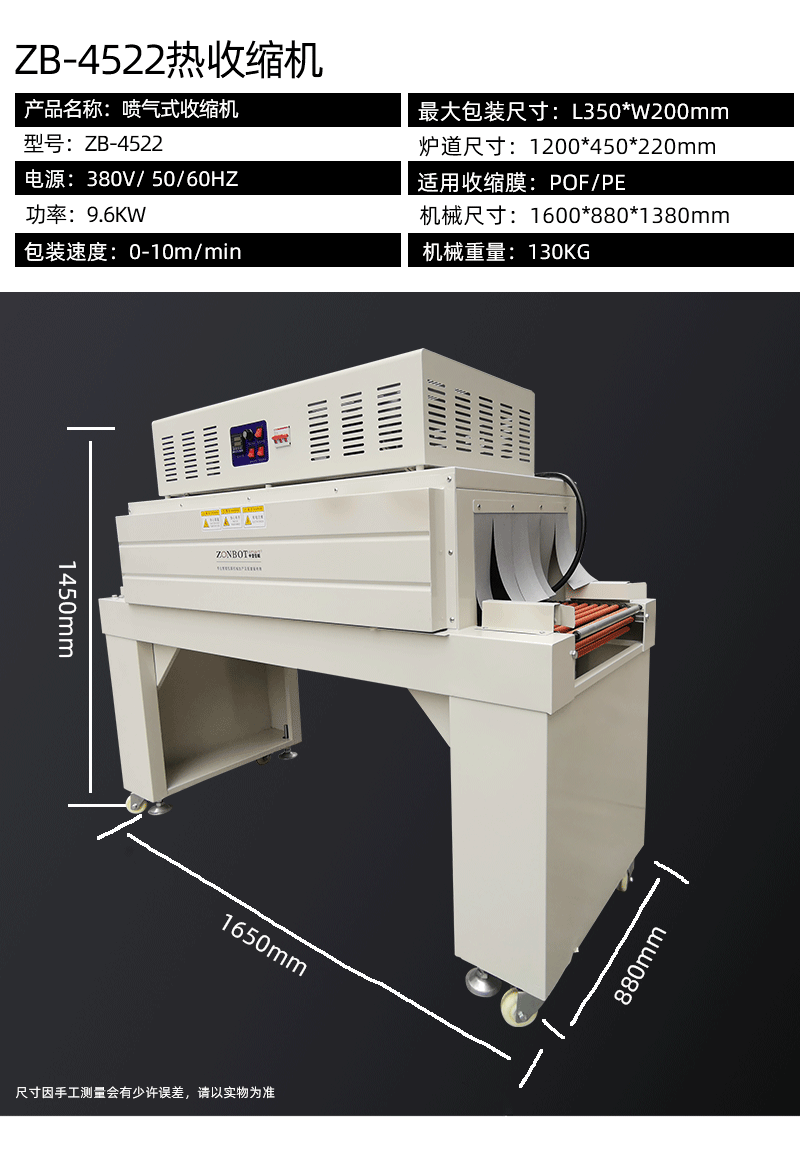 - 薄膜输送与套膜:与此同时,热收缩薄膜(常见材质如 PVC、PE、PP 等)会从薄膜卷轴上被源源不断地输送出来。当物品被输送到合适位置时,薄膜会在相关机构的作用下,自动套在待包装物品的外围,形成初步的包裹状态。