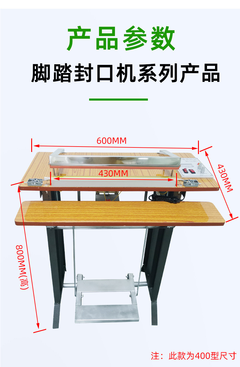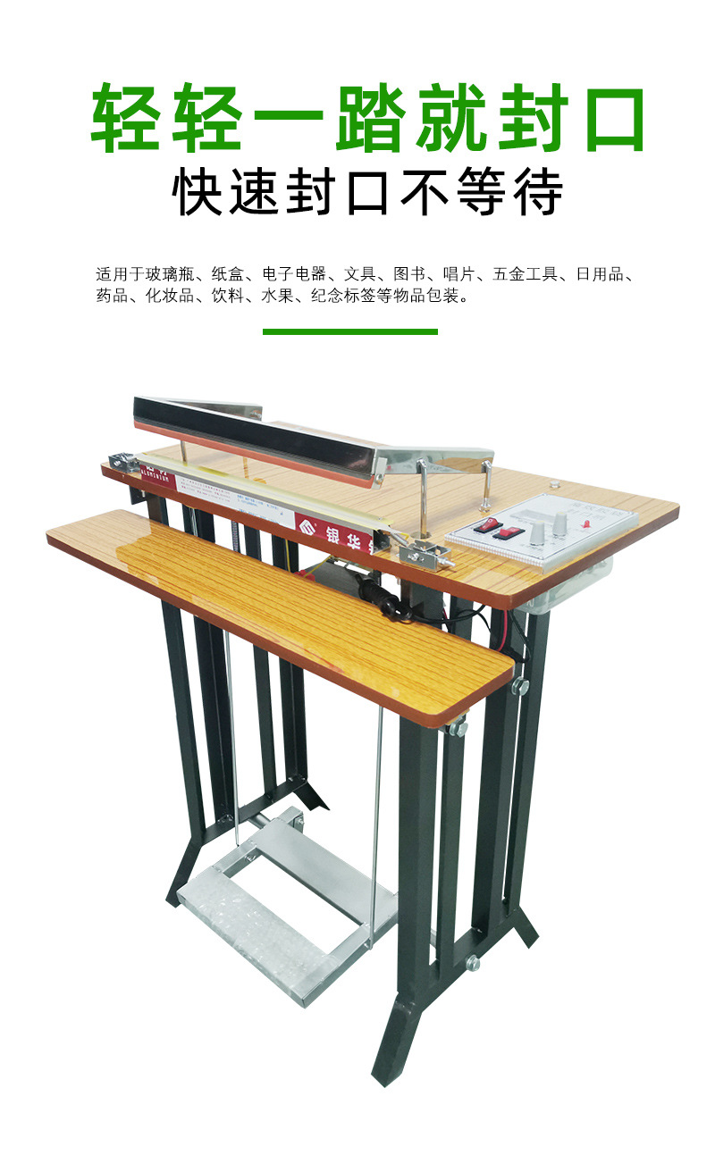 - 操作简便:只需人工放好袋子或容器,用脚踩下脚踏开关,即可自动完成封口动作,降低了操作人员的劳动强度。