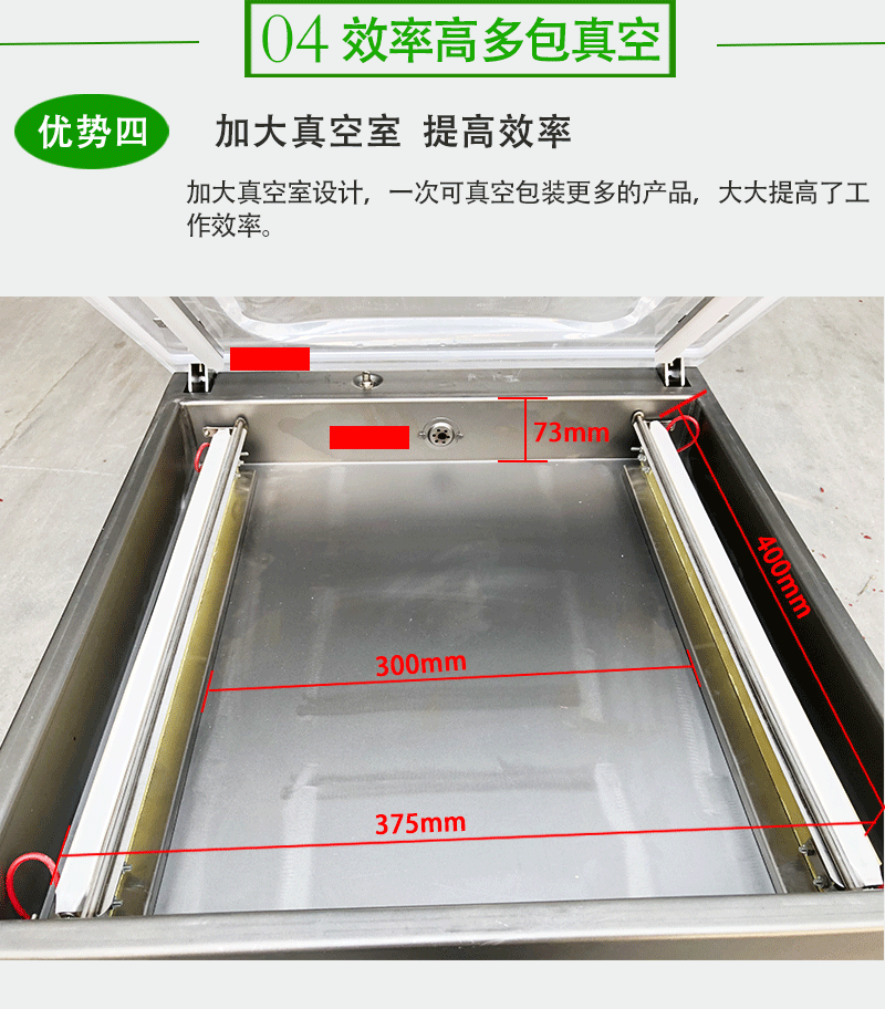 - 完成包装:达到热封时间后,热封指示灯熄灭,真空室通过电磁阀与大气联通,机盖自动抬起,完成包装循环,取出包装好的物品。