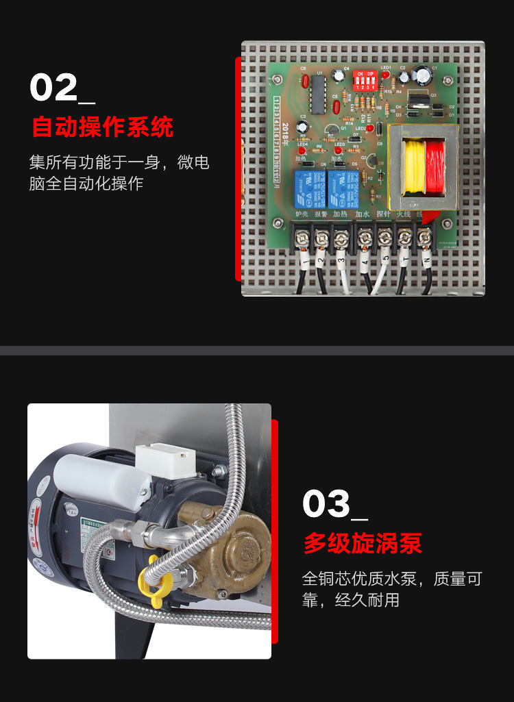 2、蒸汽发生器用于塑料工业:塑料发泡、挤压定型等,电蒸汽发生器作为包装机械中的常规设备。