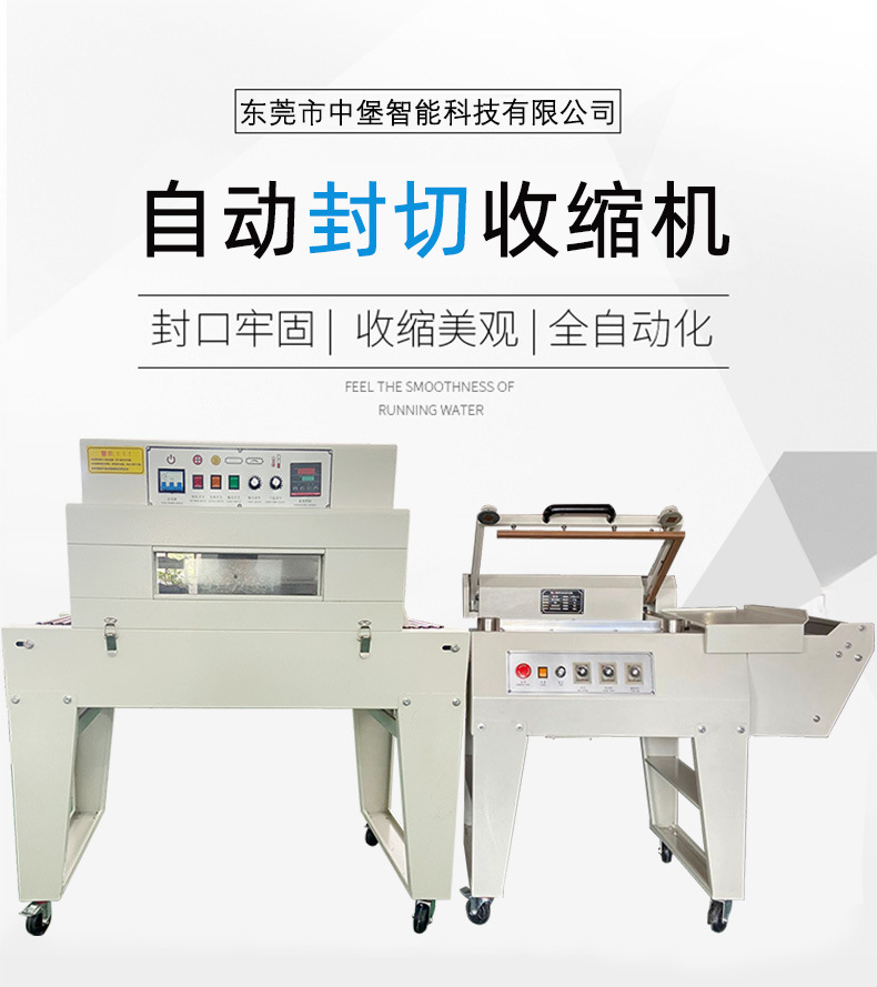 是新型的全自动无人化操作的机型,只需将产品放在进料输送带上,通过光电感应,自动完成输送-封口-输送全过程,收缩炉采用不锈钢加热器,大功率电机运风。