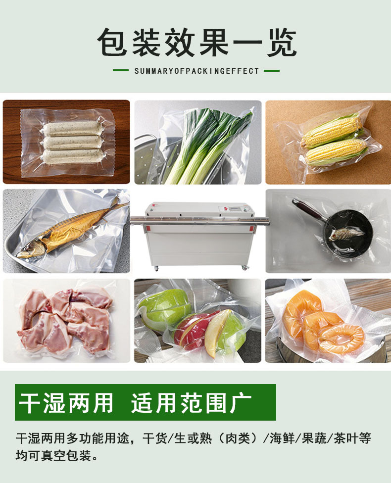 外抽式真空封口机广泛应用于工厂、‌商店、‌零售部门、‌服务业以及科研部门等各行业