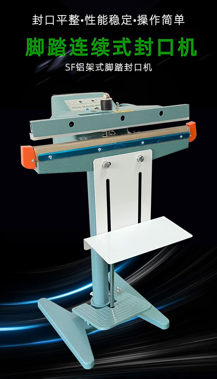 此外,脚踏封口机还适用于各种塑料薄膜、复合薄膜及铝塑薄膜的封合,广泛应用于食品、土特产、糖果、茶叶、医药、五金等行业。这种设备的操作简单,加热时间可调,接通电源即可工作,使得它在商店、家庭、工厂等环境中成为方便且经济的封口解决方案