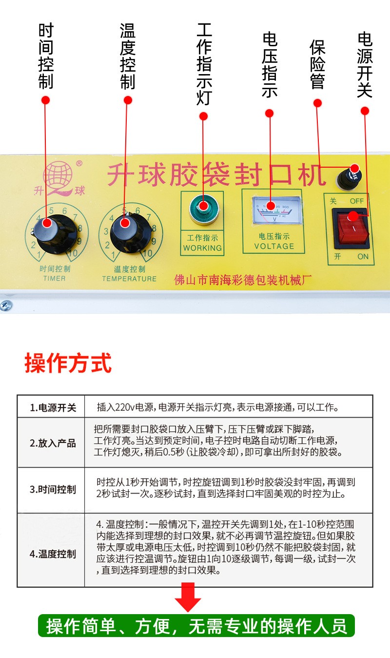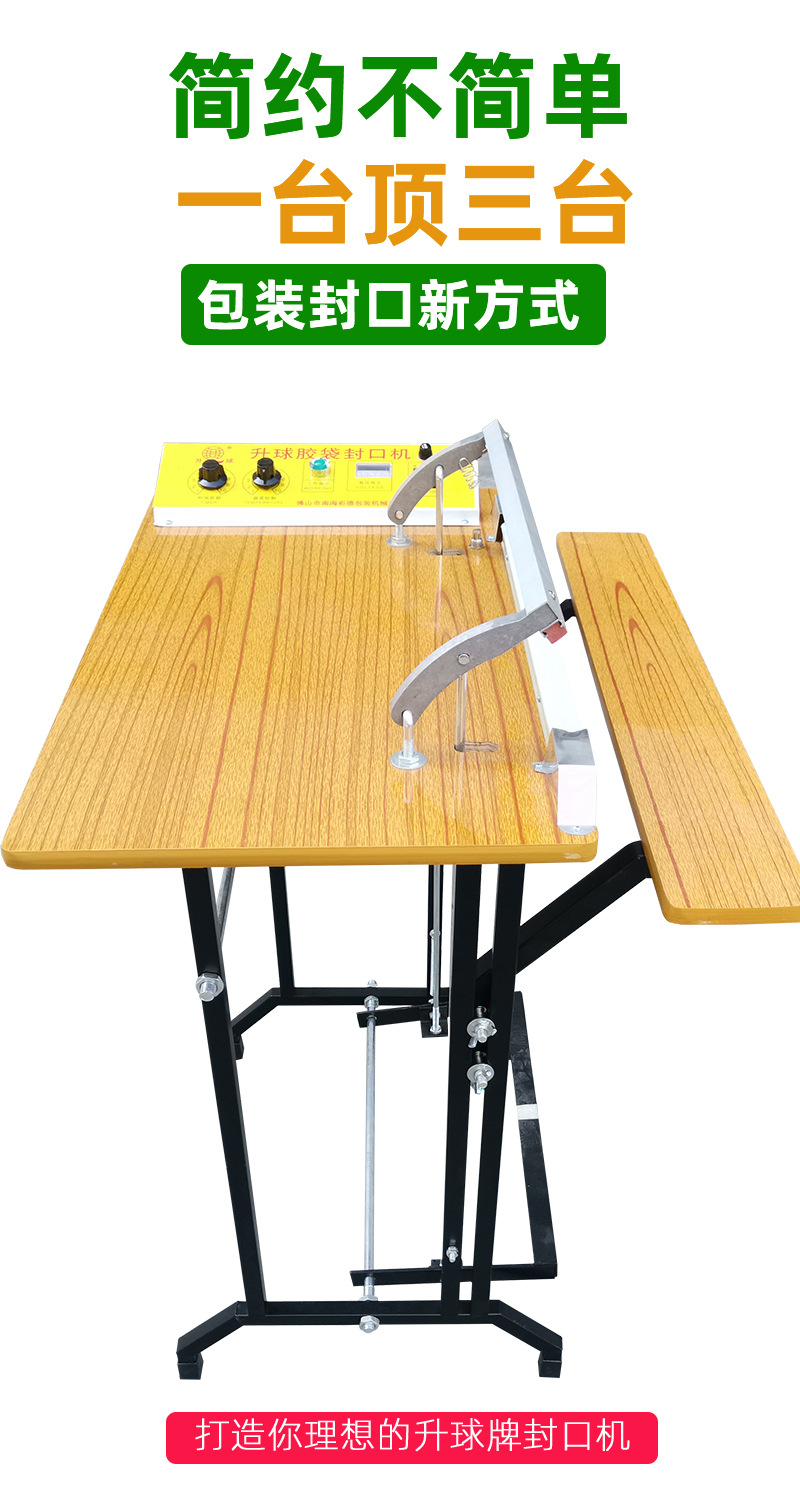升球牌是根据国内外先进的机型基础上,重新设计制造而成,适用于所有塑料袋薄膜封口及制袋,是食品厂,化妆品厂,药厂等单位的理想封口设备。适用范围 适用于医药,农药,食品,日化,润滑油等行业的铝箔袋,塑料袋,复合袋理想封口机械