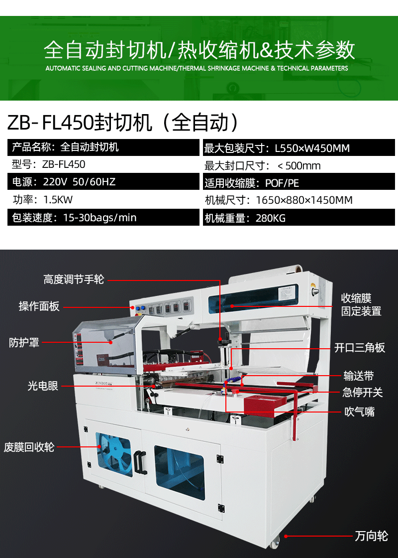 ZB-450全自动封切热收缩机 热收缩机 封切机 全自动封切机 塑封机 POF膜包装热收缩